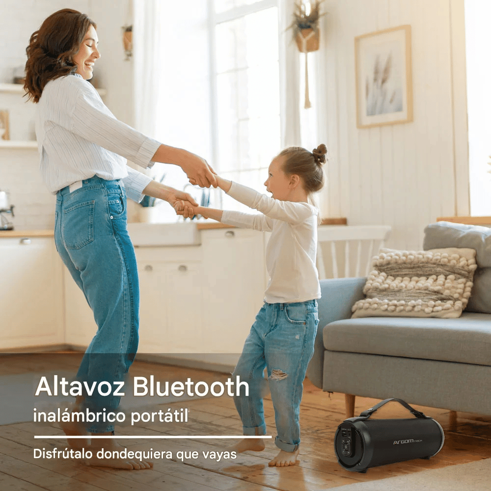 Disfruta de tu música en cualquier lugar con el altavoz inalámbrico Bazooka Air+, que ofrece 9W de potencia, conectividad Bluetooth y función TWS, ideal para uso diario con sonido claro y portátil.