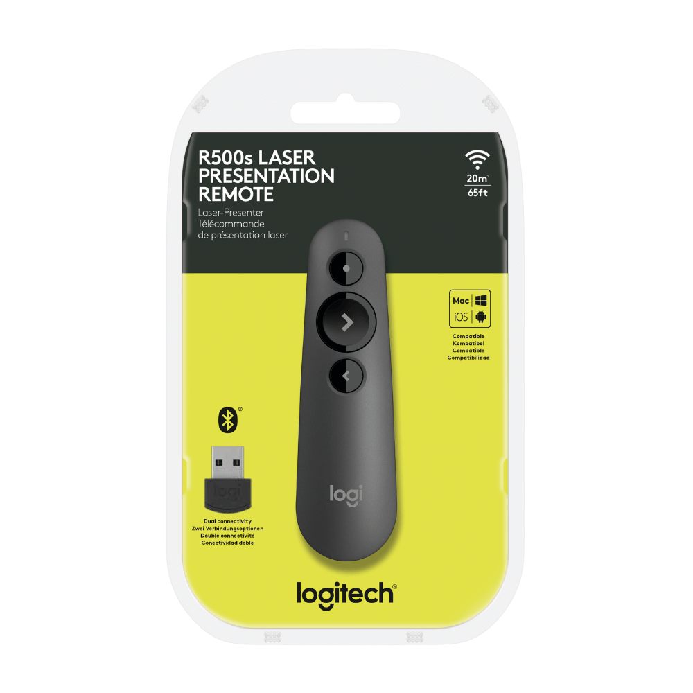 El Logitech Professional Presenter R500s es el aliado ideal para presentaciones claras, dinámicas y profesionales, permitiéndote moverte con libertad, señalar con precisión y mantener el control absoluto de cada diapositiva.