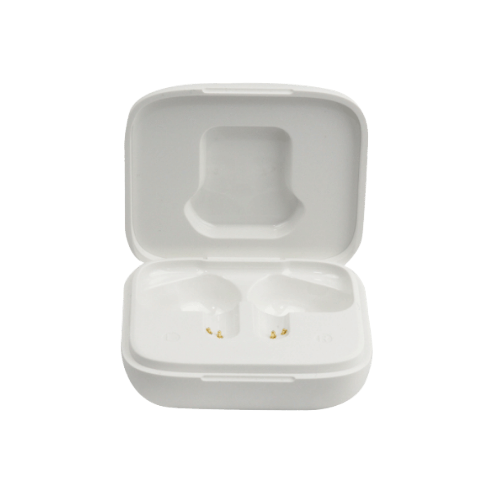 El estuche incorpora una pantalla LCD, que permite visualizar fácilmente el nivel de batería de los audífonos y del estuche. Esto facilita mantener el control de la carga y saber cuándo es momento de recargarlos.