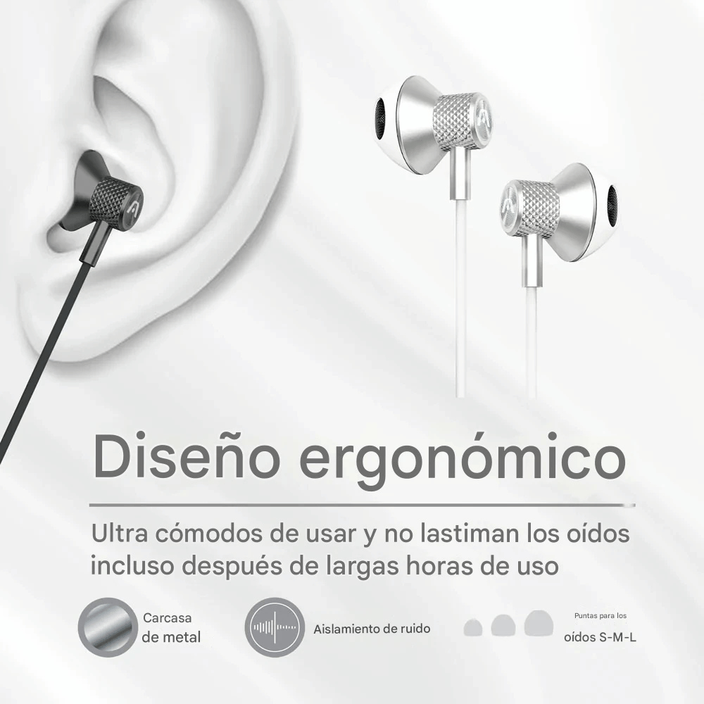 Los auriculares están fabricados con carcasa metálica de alta calidad, lo que brinda mayor durabilidad.