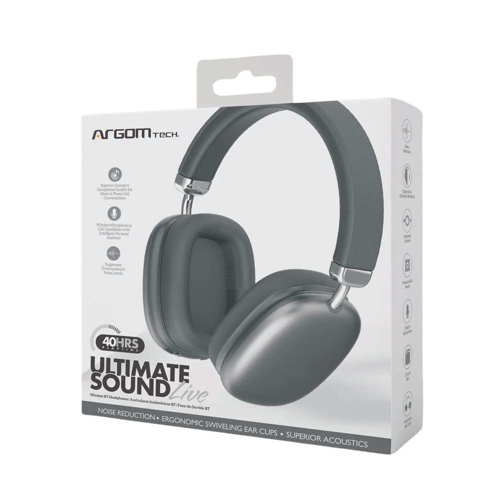 Disfruta de un audio potente y envolvente con los Argom Ultimate Sound Live, auriculares Bluetooth diseñados con reducción de ruido, graves profundos y hasta 40 horas de reproducción, ideales para música, llamadas y entretenimiento.