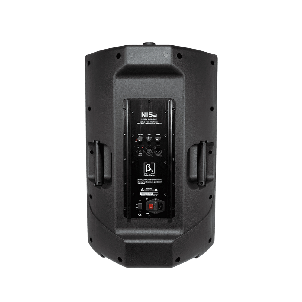 La cabina activa Beta Three N15A ofrece una potencia total de 400W (300W RMS + 100W driver) con amplificación Clase H, ideal para espacios medianos y grandes, garantizando un sonido potente, limpio y con excelente cobertura.