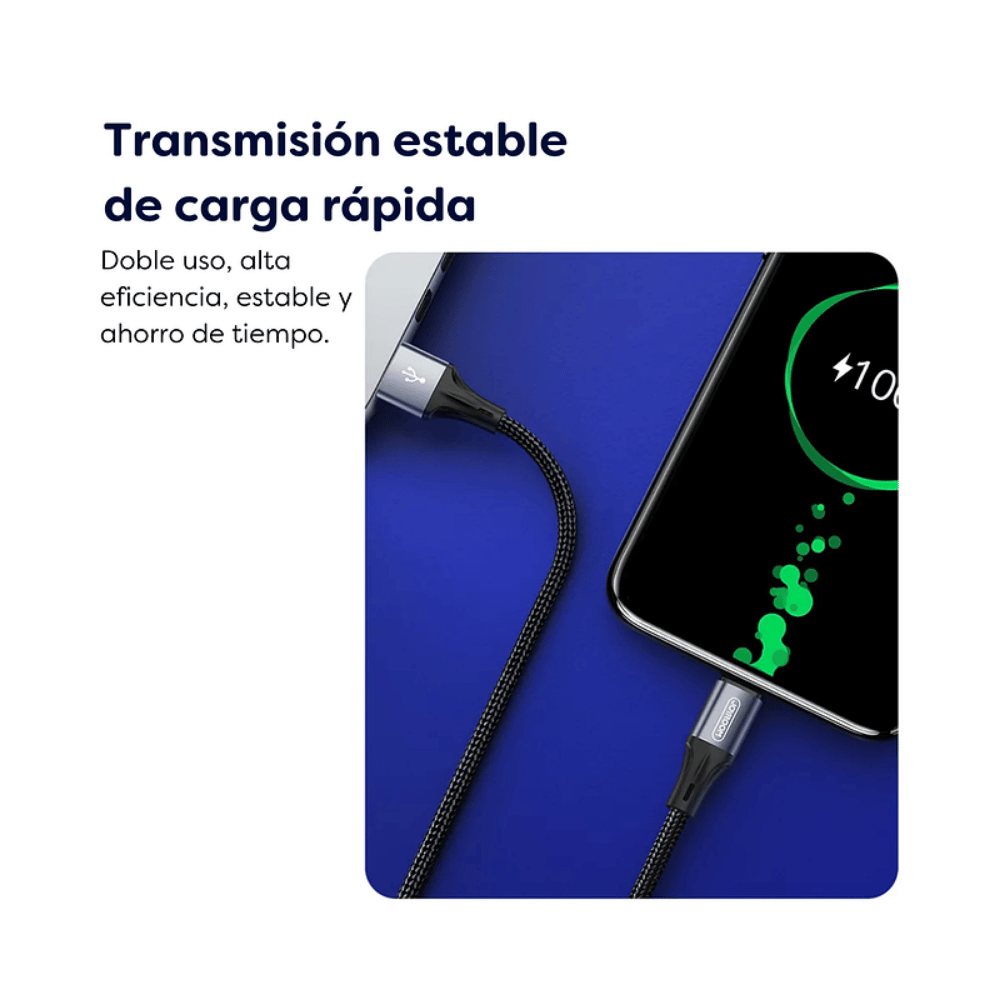 Cable de carga y transferencia de datos diseñado para ofrecer mayor durabilidad y rendimiento. Fabricado con conectores metálicos reforzados y recubrimiento en trenza de nailon, ideal para un uso diario intensivo.