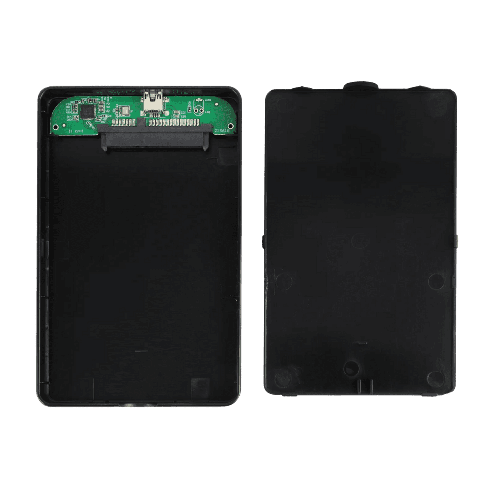 Caja SATA de 2.5” con conexión USB 2.0, diseño ultradelgado y fácil instalación sin tornillos.