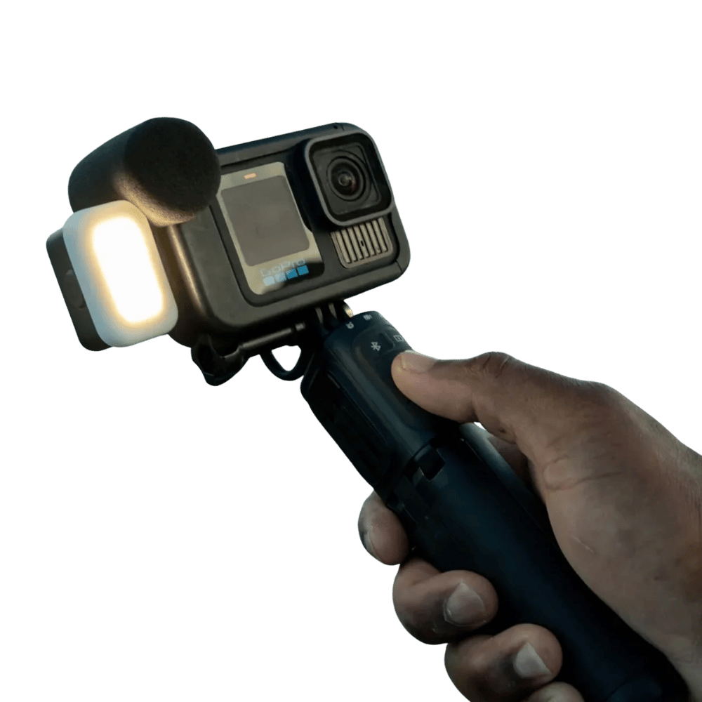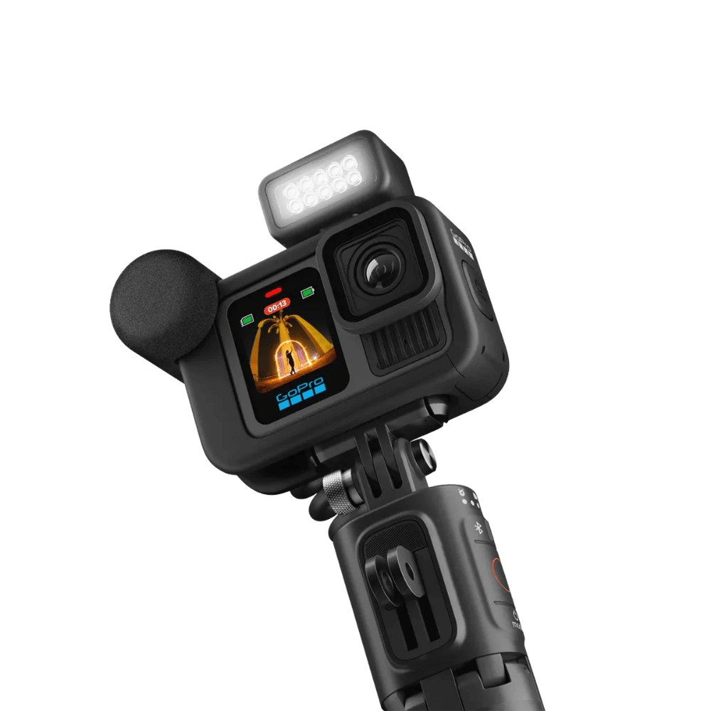 Incluye la cámara HERO13 Black junto al Volta (empuñadura con batería y trípode), módulo multimedia con micrófono integrado, módulo de luz LED de hasta 200 lúmenes y accesorios de montaje, todo listo para grabar desde el primer momento.