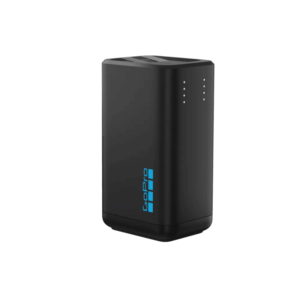 Este cargador dual permite recargar dos baterías Enduro al mismo tiempo, optimizando el tiempo de carga y asegurando que siempre tengas energía disponible para continuar grabando.