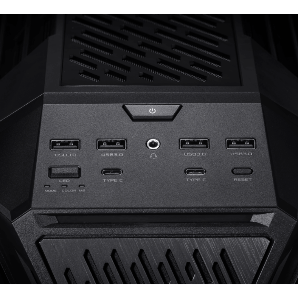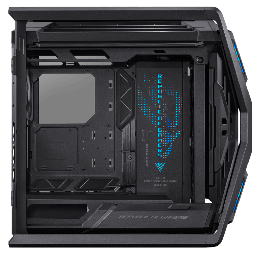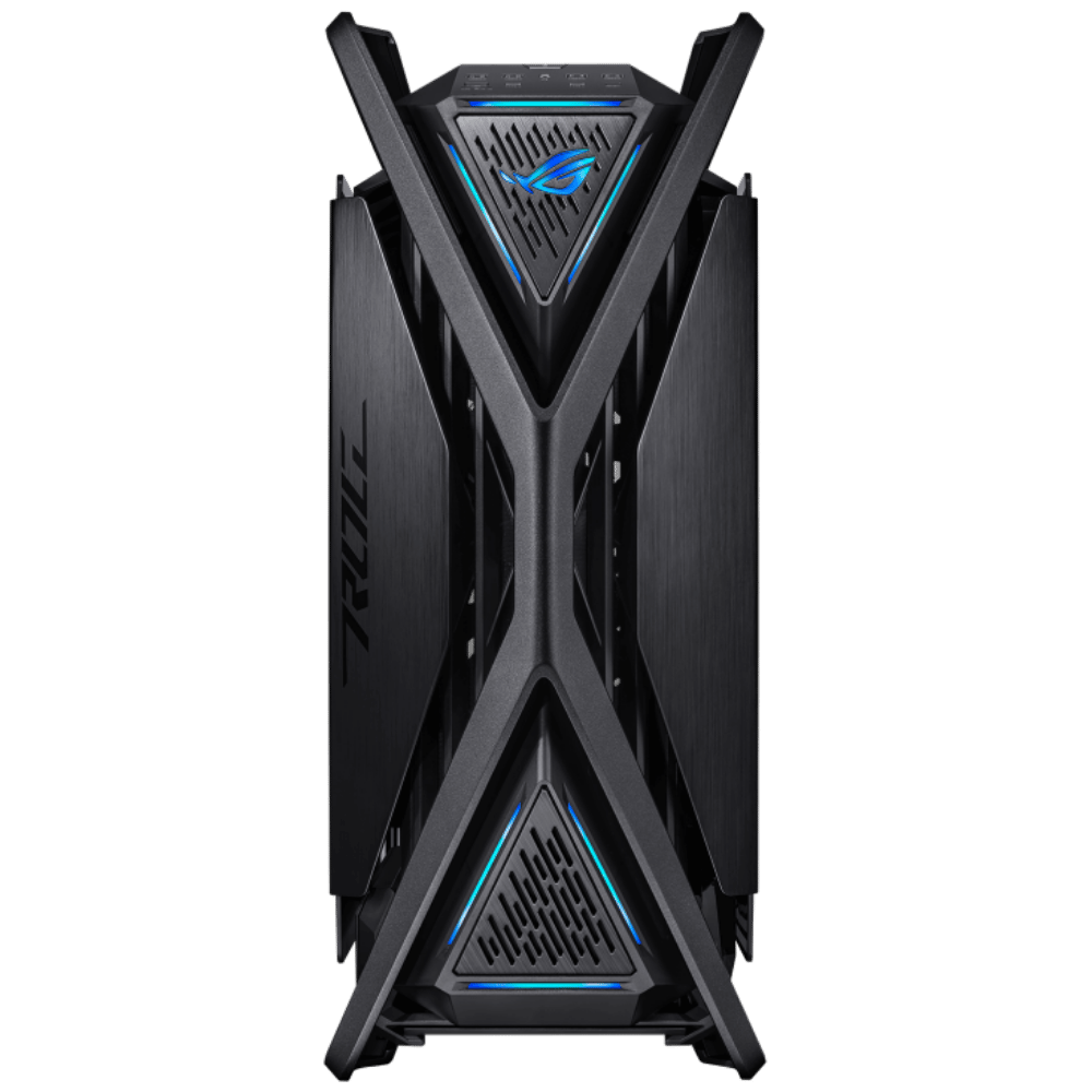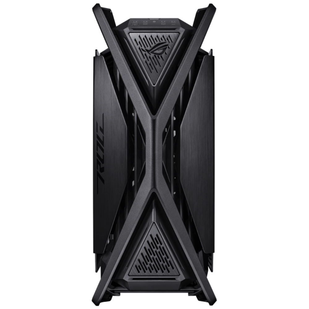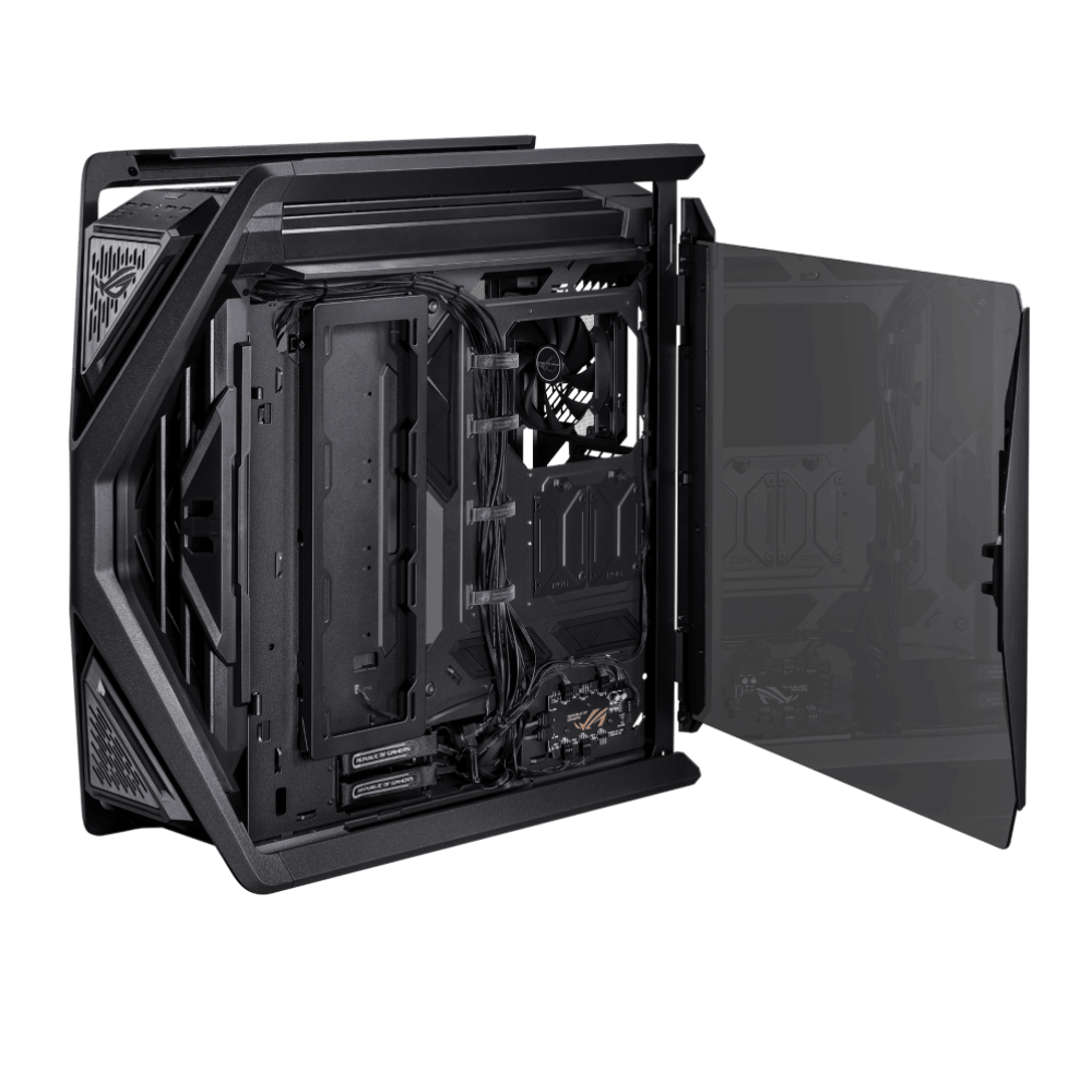 Fabricado con estructura de aluminio fundido, iluminación RGB sincronizable y estética agresiva con detalles ROG. Un gabinete que impresiona tanto por fuera como por dentro.