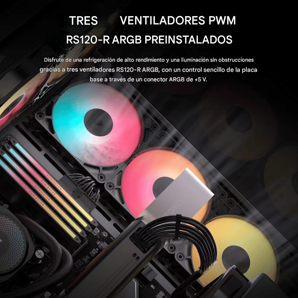 2. TRES VENTILADORES RS120-R ARGB PREINSTALADOS