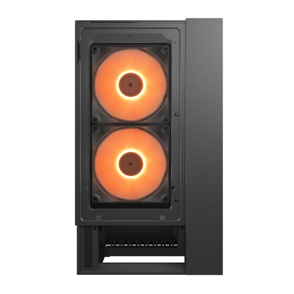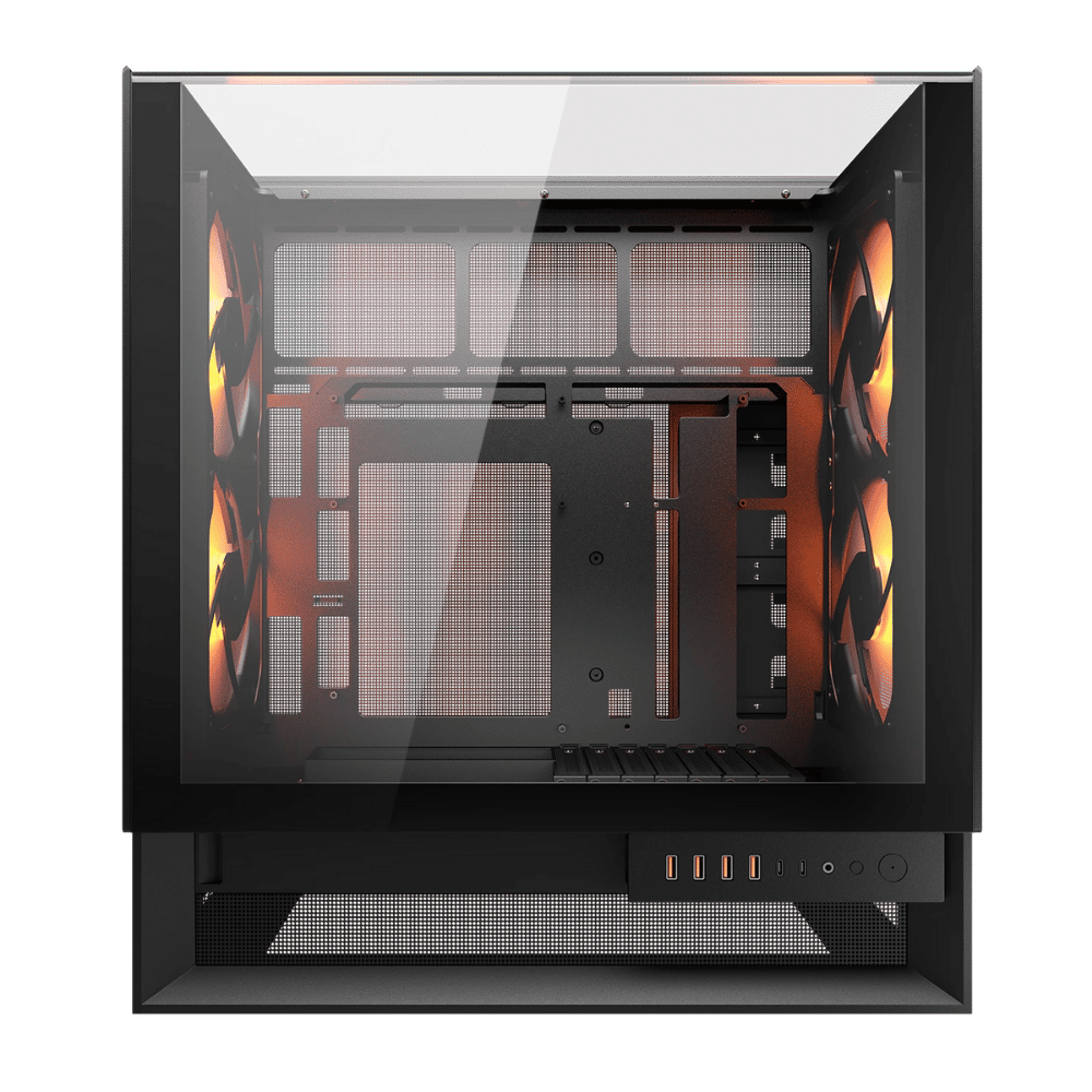 Gabinete premium con diseño simétrico, 4 ventiladores ARGB de 160 mm preinstalados y compatibilidad con placas de conector inverso, ofreciendo la mejor refrigeración y estética sin concesiones.