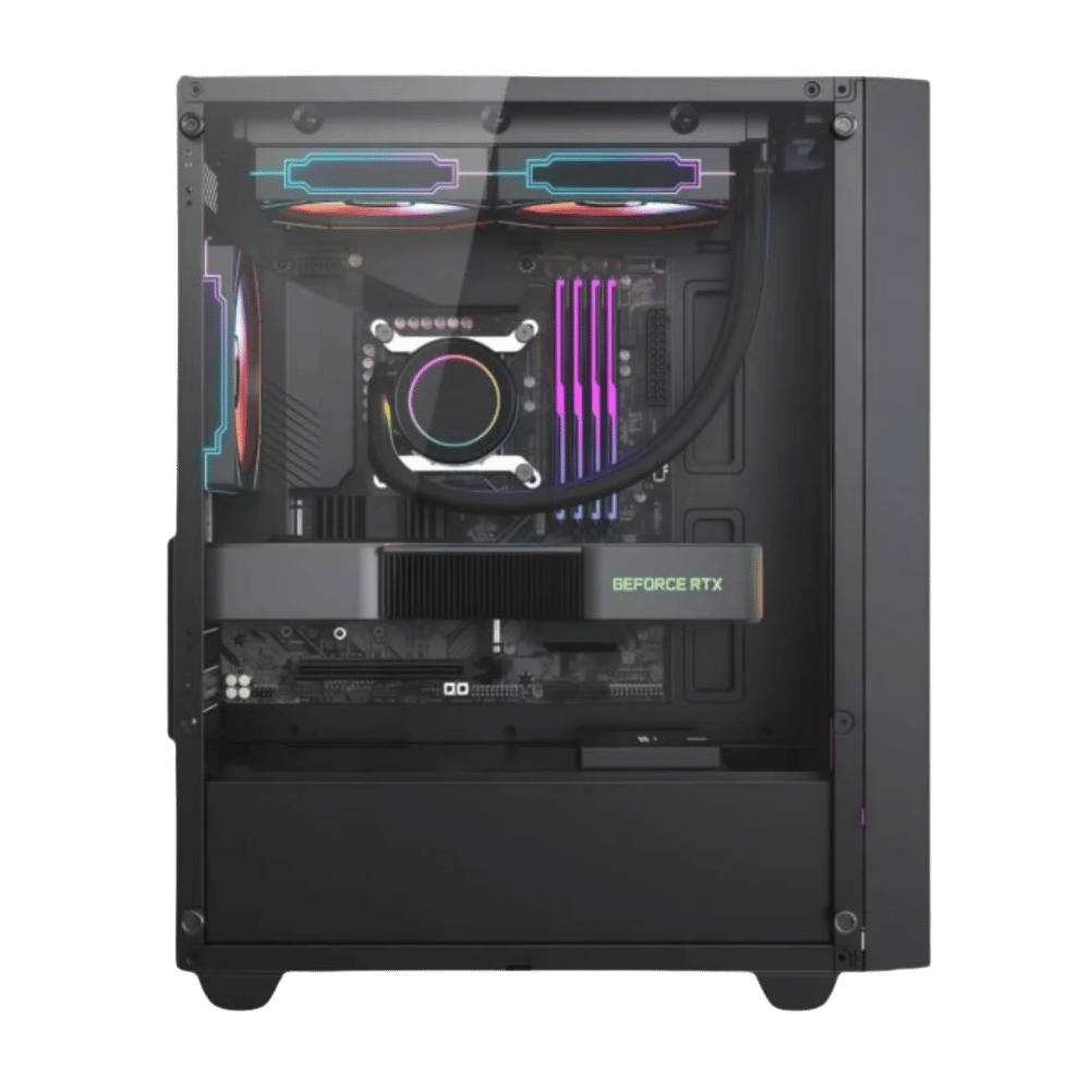 Cuenta con ventana lateral de vidrio de fácil remoción, perfecta para mostrar el interior del equipo y la iluminación ARGB de los ventiladores.