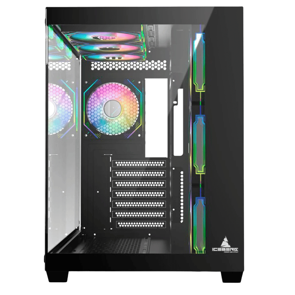 El Iceberg Crystal Cube S combina diseño moderno, triple vidrio templado y 6 ventiladores ARGB para un chasis compacto, funcional y visualmente deslumbrante.