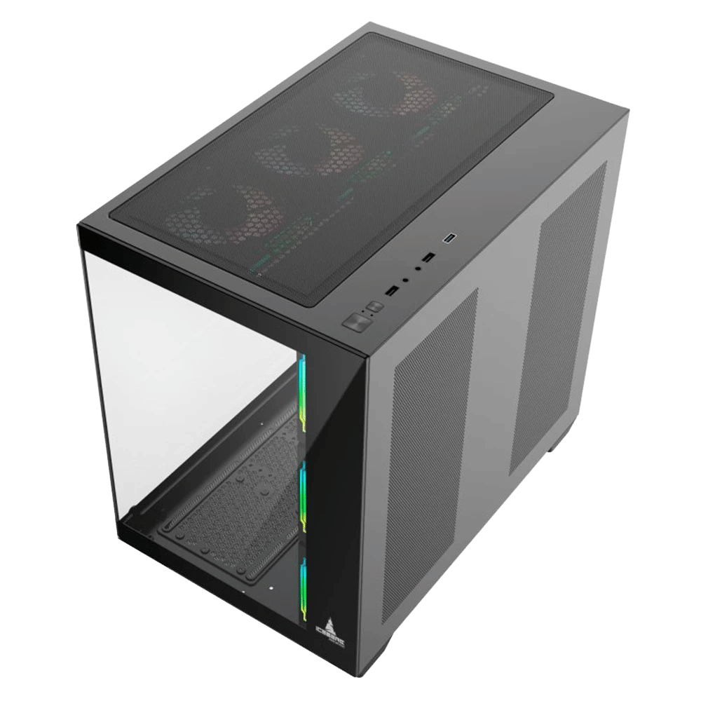 Con ventana lateral, superior y frontal en vidrio templado, permite exhibir todos los componentes y la iluminación de forma elegante y segura, ideal para setups exhibidos.