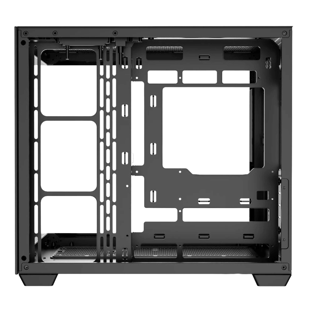 El formato tipo “Mid Cube” separa la fuente de poder en una cámara independiente al lateral, mejorando el flujo de aire interno y el orden del cableado.