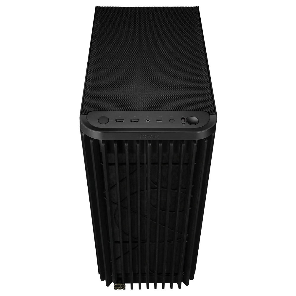 Incorpora dos ventiladores frontales de 160 mm y un ventilador trasero de 120 mm PWM, junto a una rejilla frontal con 33% de porosidad, asegurando una entrada de aire masiva y eficiente para CPU y GPU, con bajo nivel de ruido y vibraciones mínimas.