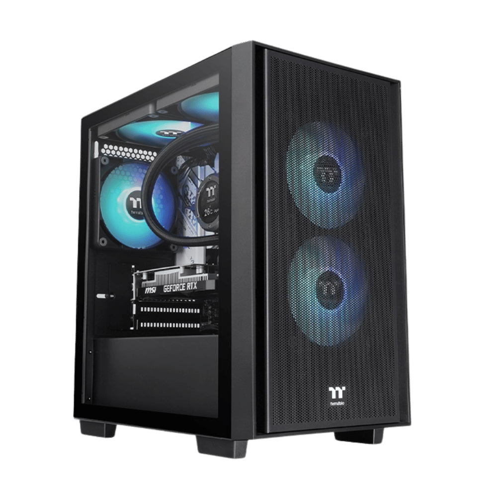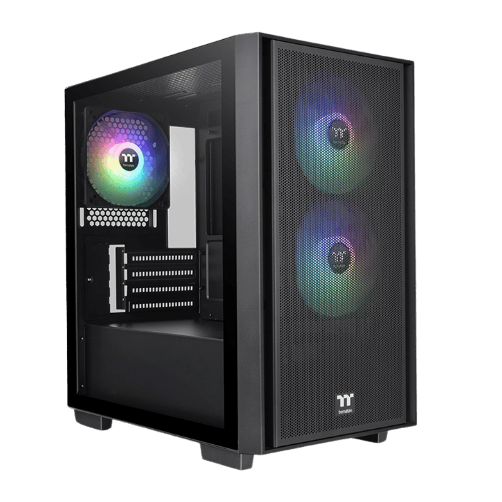 Construye un PC potente con el Thermaltake Versa H16 ARGB, chasis micro ATX con vidrio templado, ventiladores ARGB y panel frontal de malla. Incluye fuente Thermaltake 650W 80 Plus Bronze para energía estable.