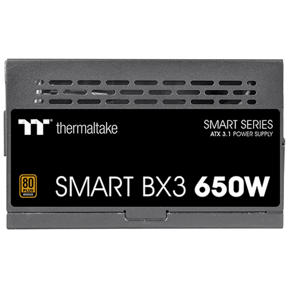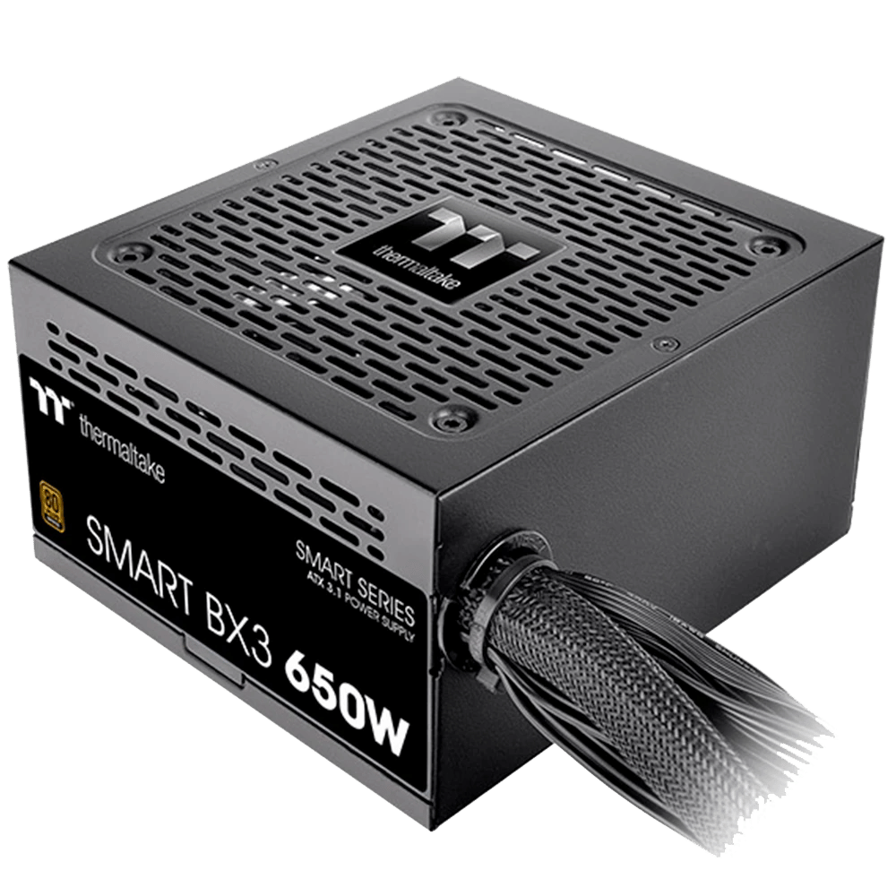 Este combo incluye una fuente Thermaltake Smart BX3 650W 80 Plus Bronze, diseñada para proporcionar energía estable y eficiente. Su certificación garantiza menor consumo energético y mayor seguridad para los componentes del sistema.
