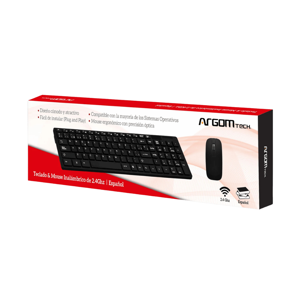 COMBO ARGOM TECLADO Y MOUSE INALÁMBRICO EN ESPAÑOL CON CONEXIÓN 2.4GHZ