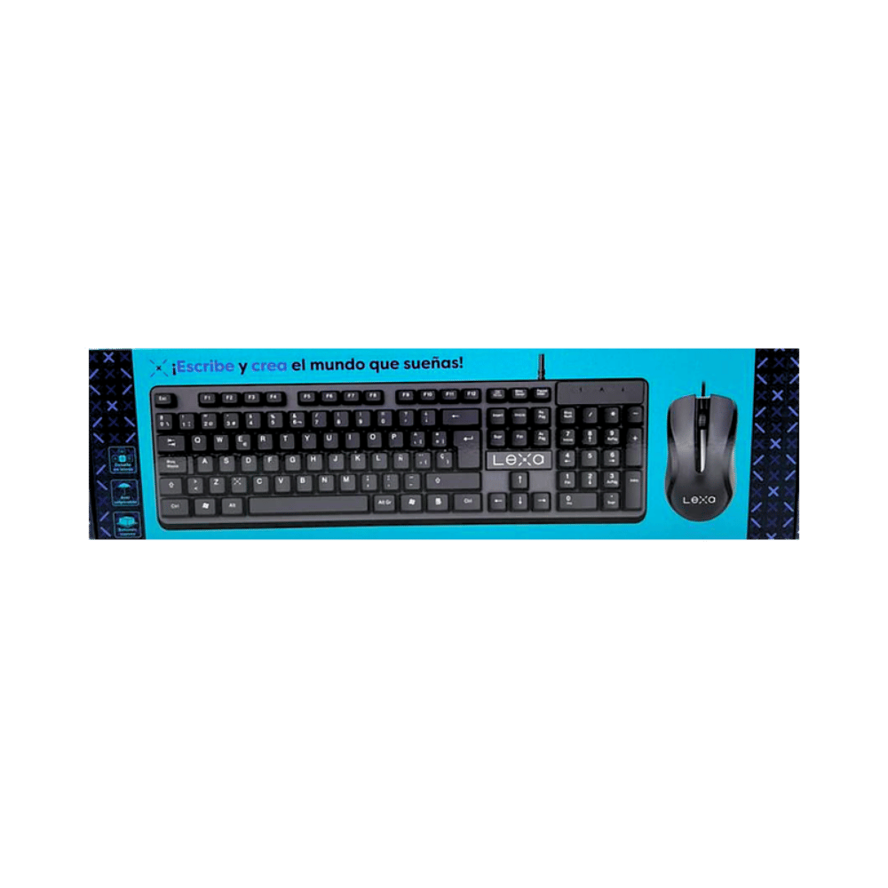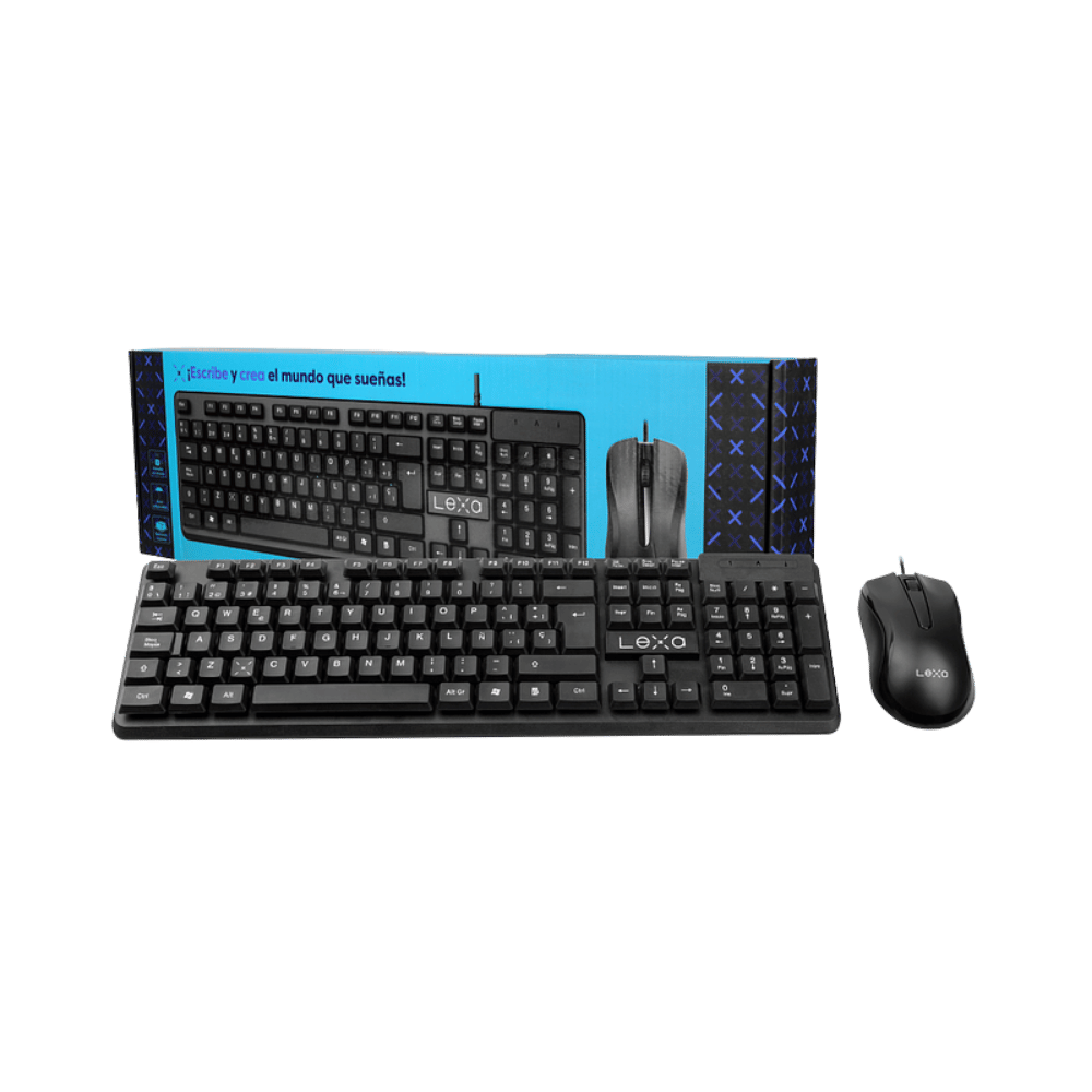 Combo Lexa con teclado ultradelgado y mouse óptico 1200 DPI. Silencioso, resistente y compatible con Windows, Mac y Linux. Ideal para oficina, hogar y estudio.