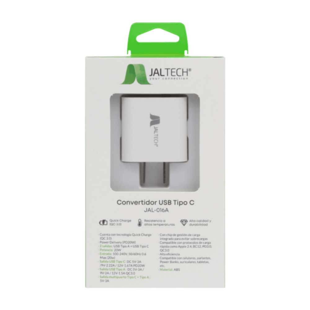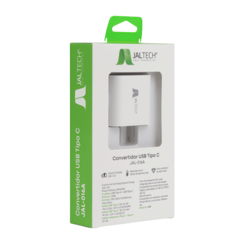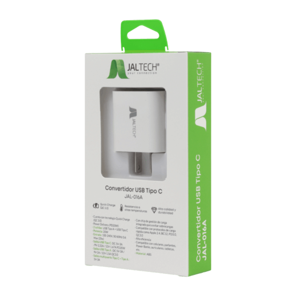 Este convertidor de pared ofrece carga de alta velocidad gracias a sus protocolos Quick Charge 3.0 y Power Delivery 20W, reduciendo significativamente el tiempo de carga de celulares, tablets y otros dispositivos compatibles.
