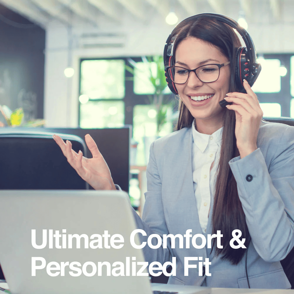 Su estructura liviana con almohadillas de tela deportiva y orejeras con giro de 90° brinda comodidad durante largas sesiones.