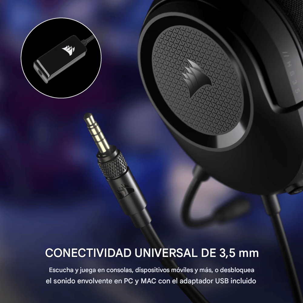 Funciona de forma inmediata con PC, Mac, PlayStation, Xbox, consolas portátiles, móviles y tabletas gracias a su conexión universal de 3,5 mm, sin necesidad de configuraciones complejas.