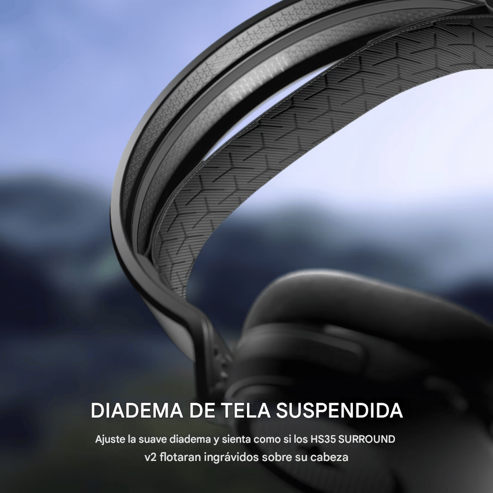Cuenta con diadema flotante, estructura liviana, auriculares giratorios y almohadillas de tejido suave que reducen la presión y permiten jugar durante horas con total confort.