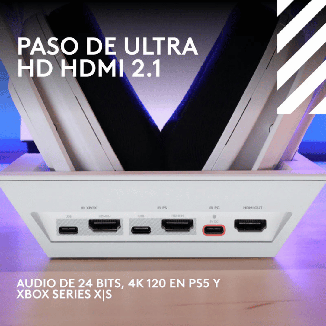 Compatibilidad con paso de audio y video HDMI 2.1 para consolas de nueva generación, con soporte 4K a 120 Hz y audio de 24 bits, ofreciendo mayor profundidad, detalle y fidelidad sonora.