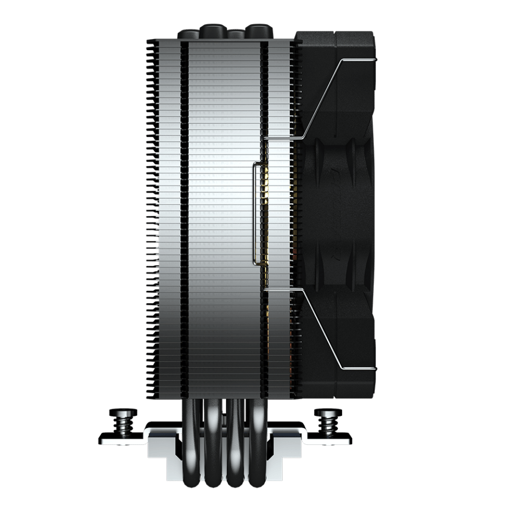 Los cuatro heatpipes de 6 mm tocan directamente la superficie de la CPU, maximizando la transferencia de calor y manteniendo temperaturas más bajas incluso bajo cargas intensivas.