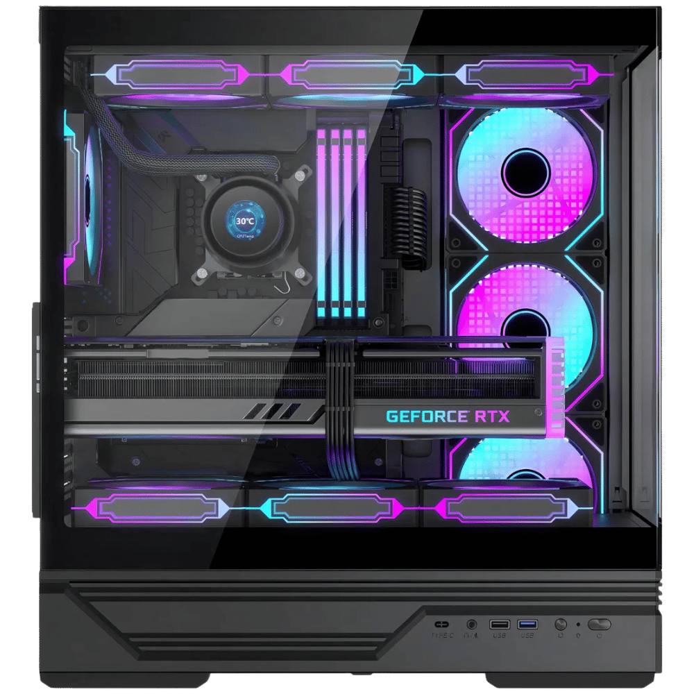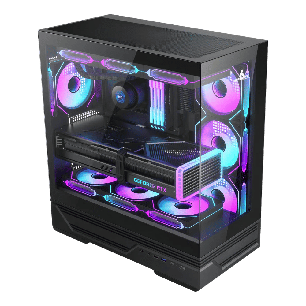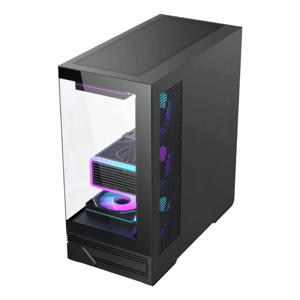 Su estructura combina durabilidad y estética, con paneles de vidrio templado que permiten lucir tu hardware y un acabado negro elegante que resalta en cualquier setup gamer.