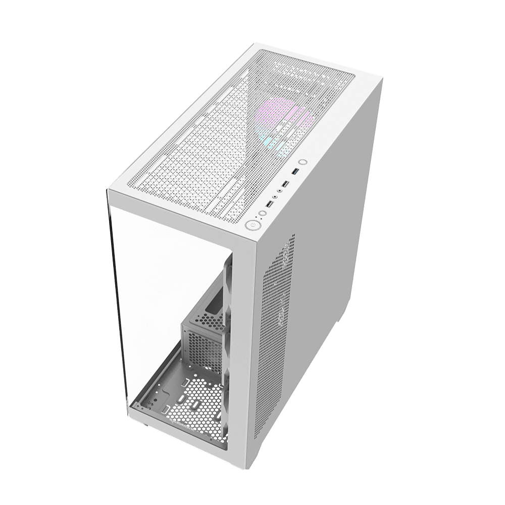 Diseño blanco moderno, excelente ventilación ARGB y amplio espacio interior para hardware de alto nivel.