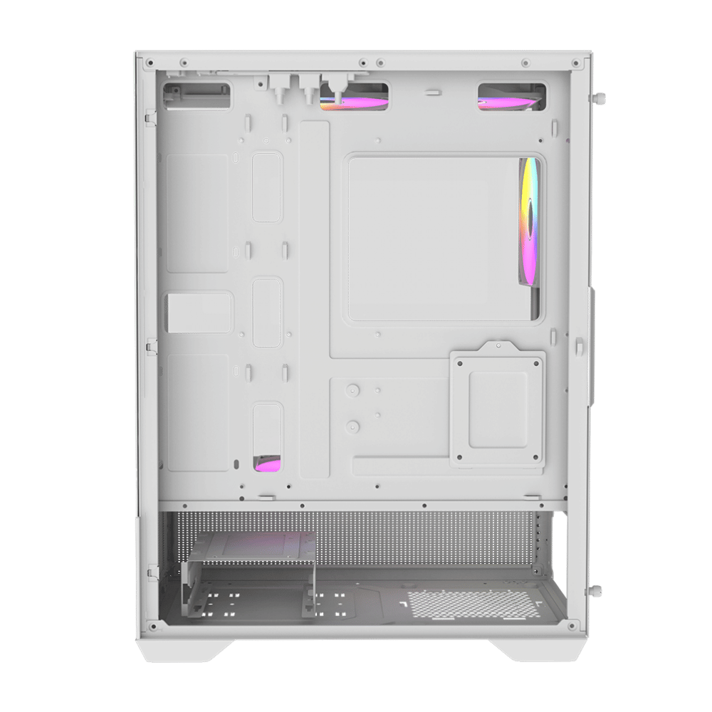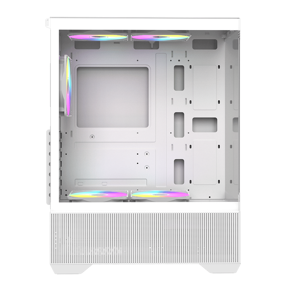 Incluye un ventilador ARGB 360mm en el lateral y un ventilador ARGB de 120mm en la parte trasera. Además, admite hasta 10 ventiladores para mantener temperaturas ideales incluso con hardware exigente.