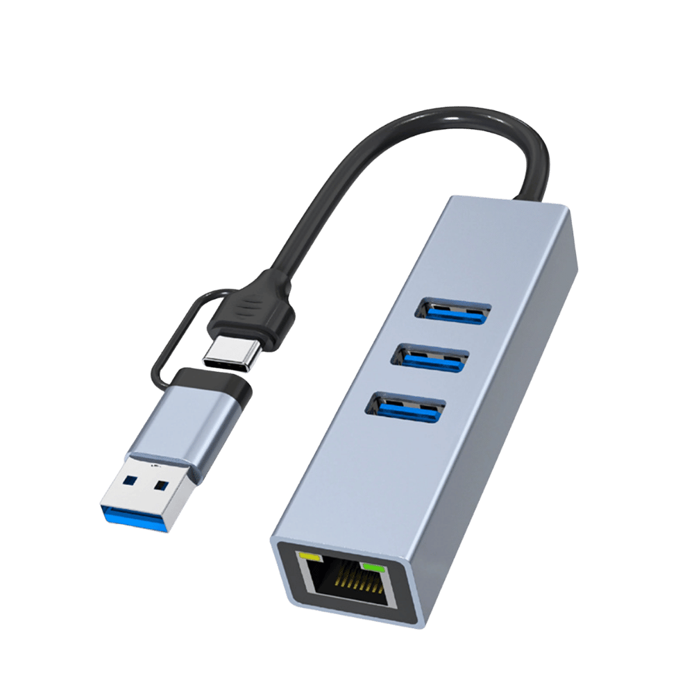 HUB USB Y TIPO C CON 3 PUERTOS USB Y ETHERNET 100 MBPS