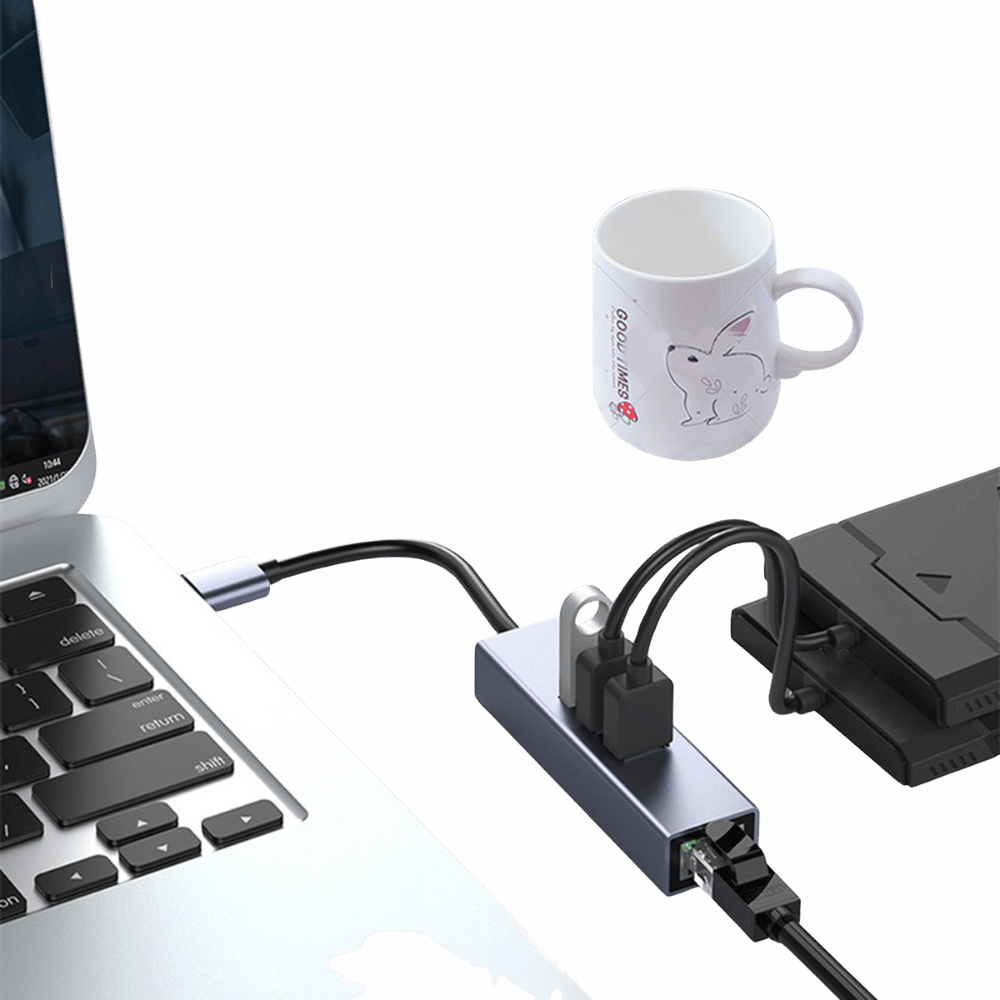 Amplía la conectividad de tu equipo con este hub USB y Tipo C 2 en 1, equipado con 3 puertos USB 2.0, conexión Ethernet y diseño plug and play. Ideal para trabajo, estudio y uso diario.