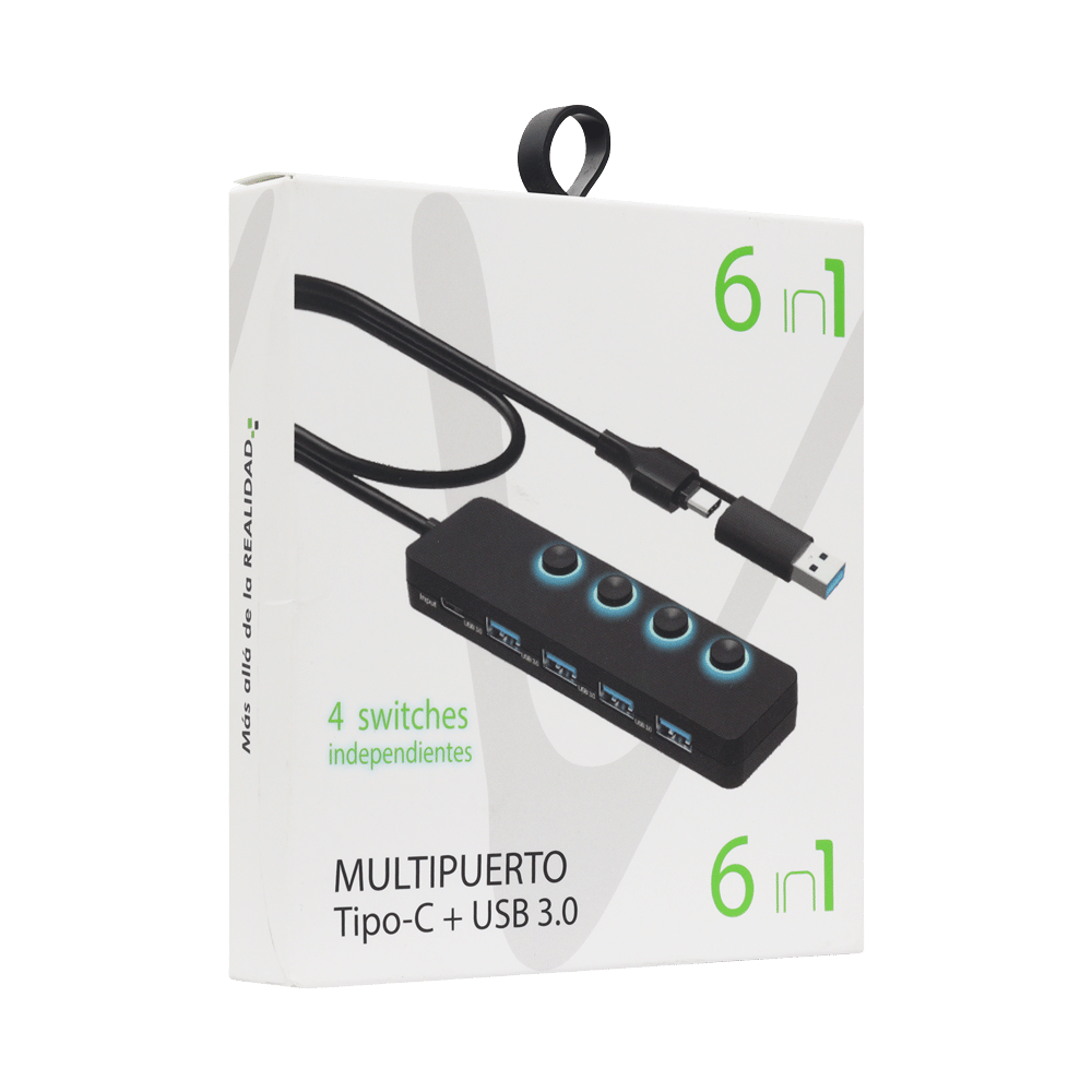 Hub Tipo C + Usb X4 Puertos Usb 3.0 Switch – Jal-S0008 11782
