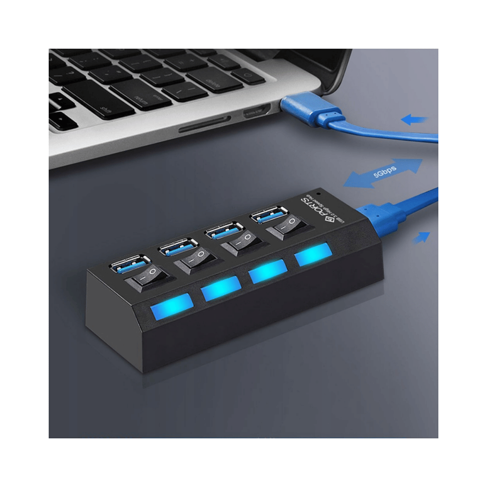 HUB USB 3.0 SWITCH LED X4 | CONTROL INDIVIDUAL Y ALTA VELOCIDAD