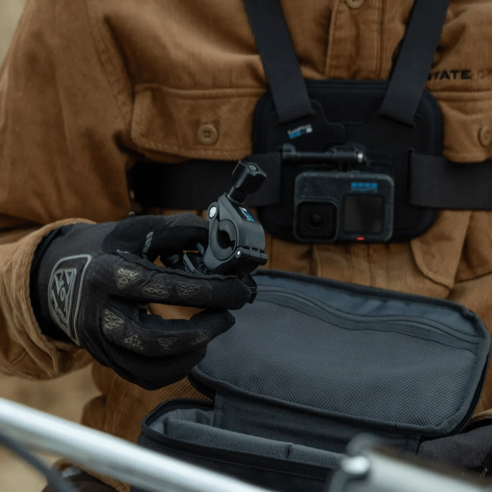 Fija tu GoPro a bicicletas, bastones, remos y otros equipos para conseguir ángulos dinámicos y perspectivas únicas. Se ajusta con facilidad y ofrece gran estabilidad incluso en terrenos difíciles.