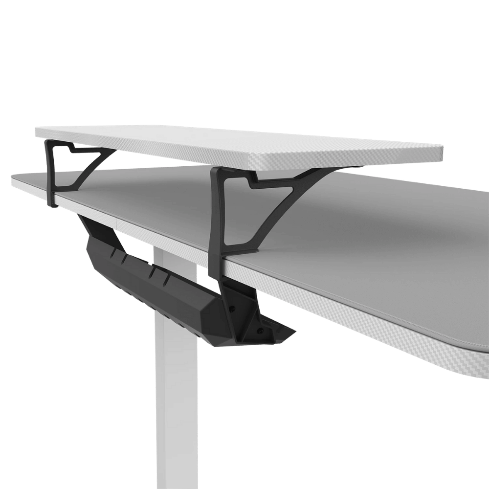 La base del escritorio cuenta con un laminado texturizado de fibra de carbono que ofrece una alta resistencia a rayones y un look moderno. Para llevar la funcionalidad al límite, incluye una alfombrilla de ratón de tamaño completo que cubre toda la mesa, garantizando que nunca te quedes sin espacio para el sensor de tu mouse, sin importar lo bajos que sean tus DPI.