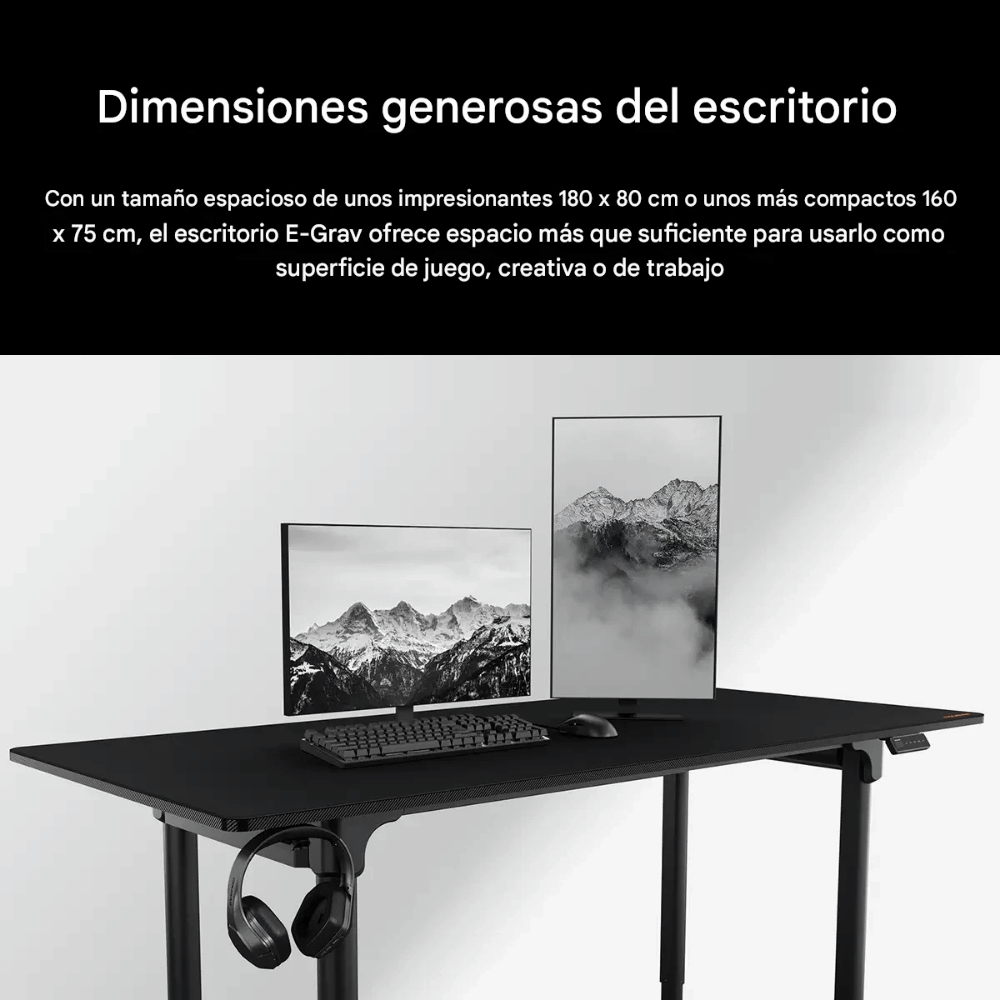 El escritorio definitivo para setups gamer, creativos o laborales, con dimensiones amplias, doble motor y diseño ergonómico que maximiza comodidad y productividad.