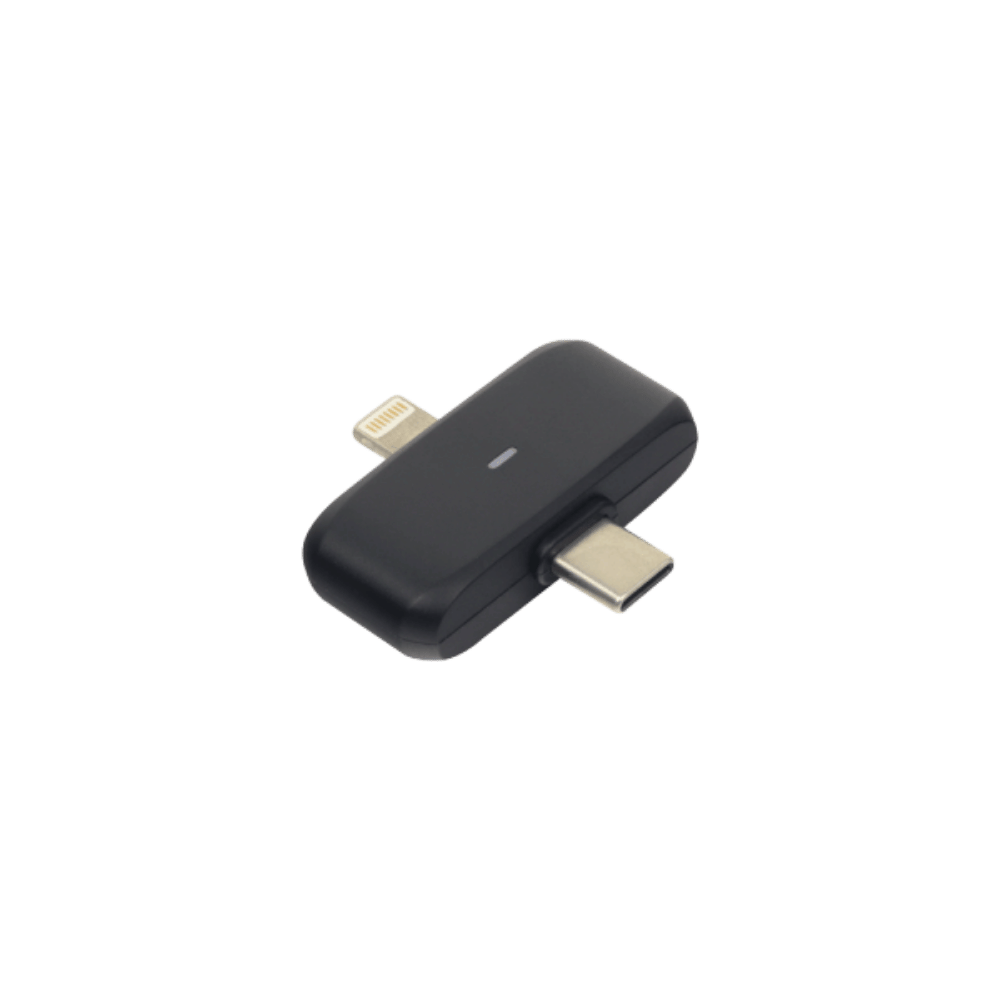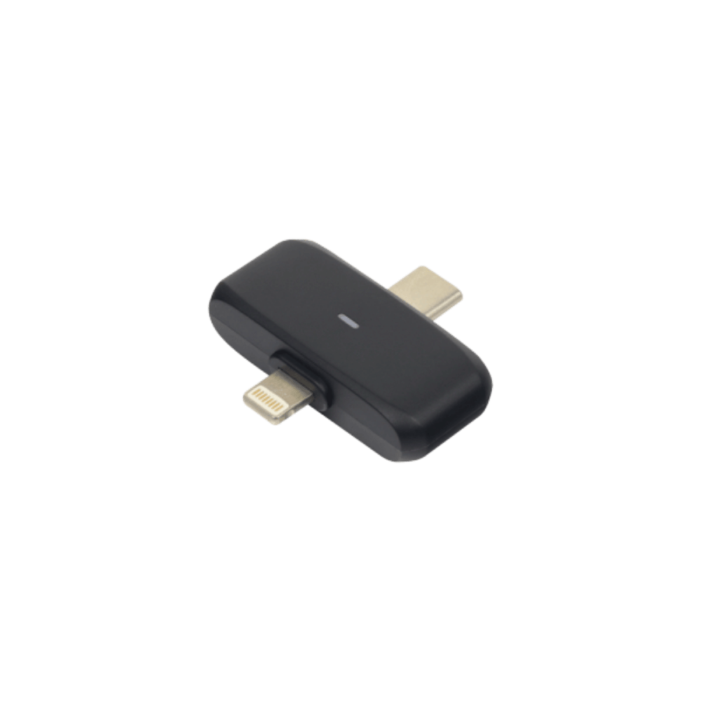 Incluye un receptor dual con conexión USB-C y Lightning, lo que permite utilizar el sistema con dispositivos Android y iPhone sin necesidad de adaptadores adicionales.