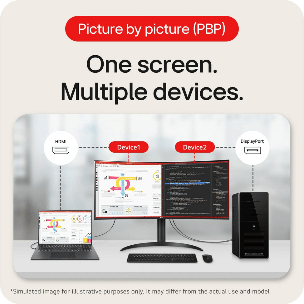 La resolución 3440 x 1440 con curvatura 1800R amplía tu campo de visión y reduce distracciones, permitiéndote ver y gestionar múltiples aplicaciones al mismo tiempo de forma más eficiente.