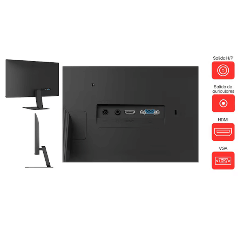 Incluye puertos HDMI, VGA y salida de audífonos, facilitando la conexión con PCs y otros dispositivos, tanto en el hogar como en la oficina.