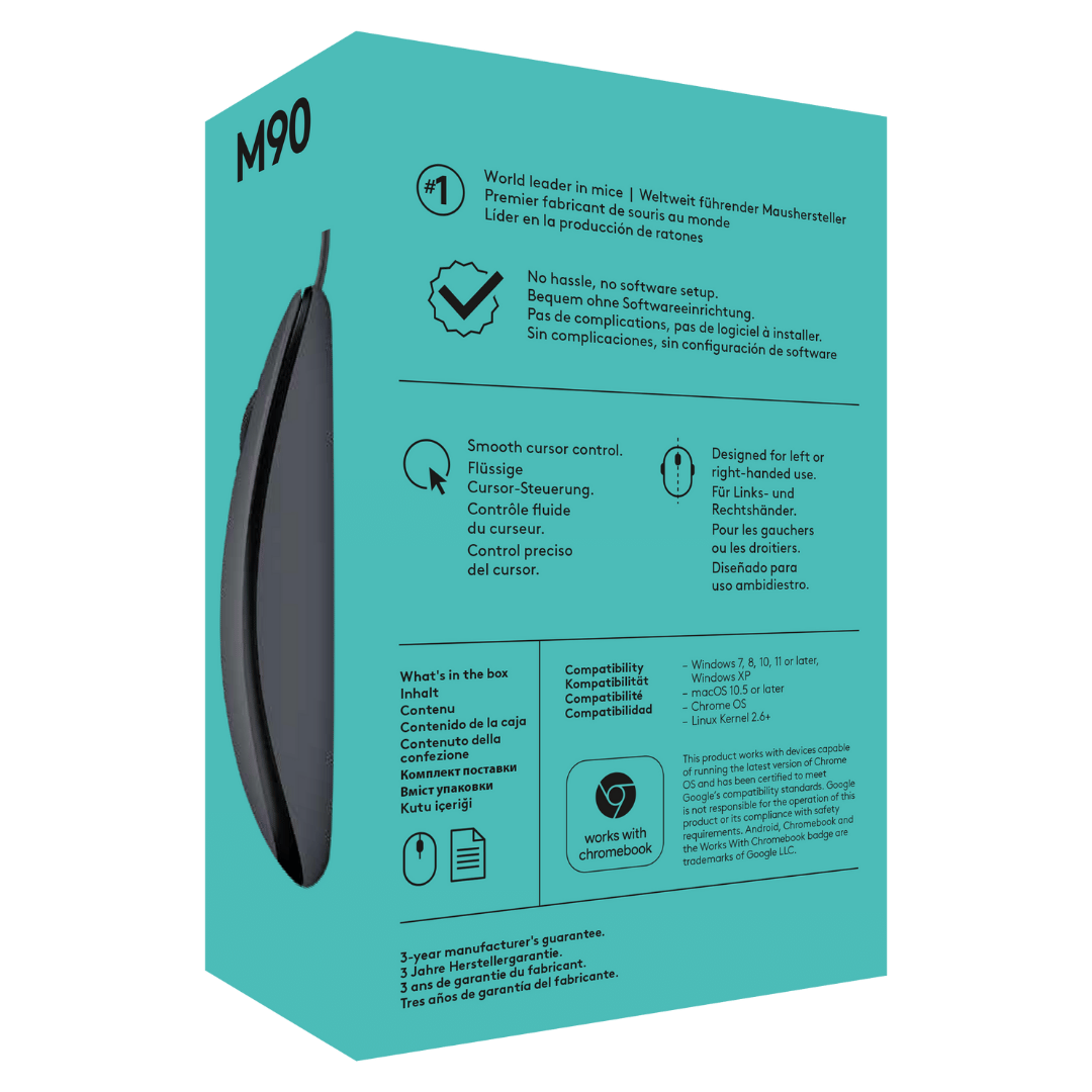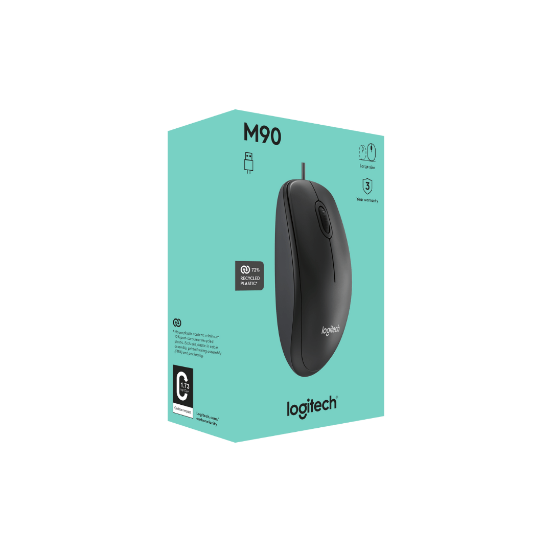 El Mouse Óptico Logitech M90 con Cable USB de Logitech es la solución ideal para quienes buscan comodidad, control fiable y facilidad de uso en el trabajo diario, el estudio o el hogar.