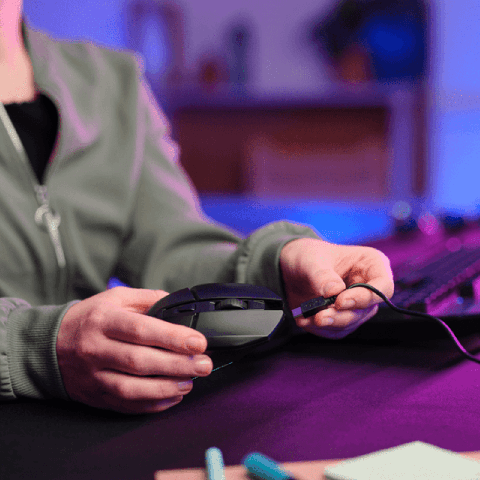 Con seis botones programados, incluyendo dos laterales, una rueda de desplazamiento y control de DPI, tendrás todas las herramientas que necesitas al alcance de la mano. Su diseño ligero de 92 g y forma grande brindan un agarre cómodo y firme durante largas sesiones de juego.