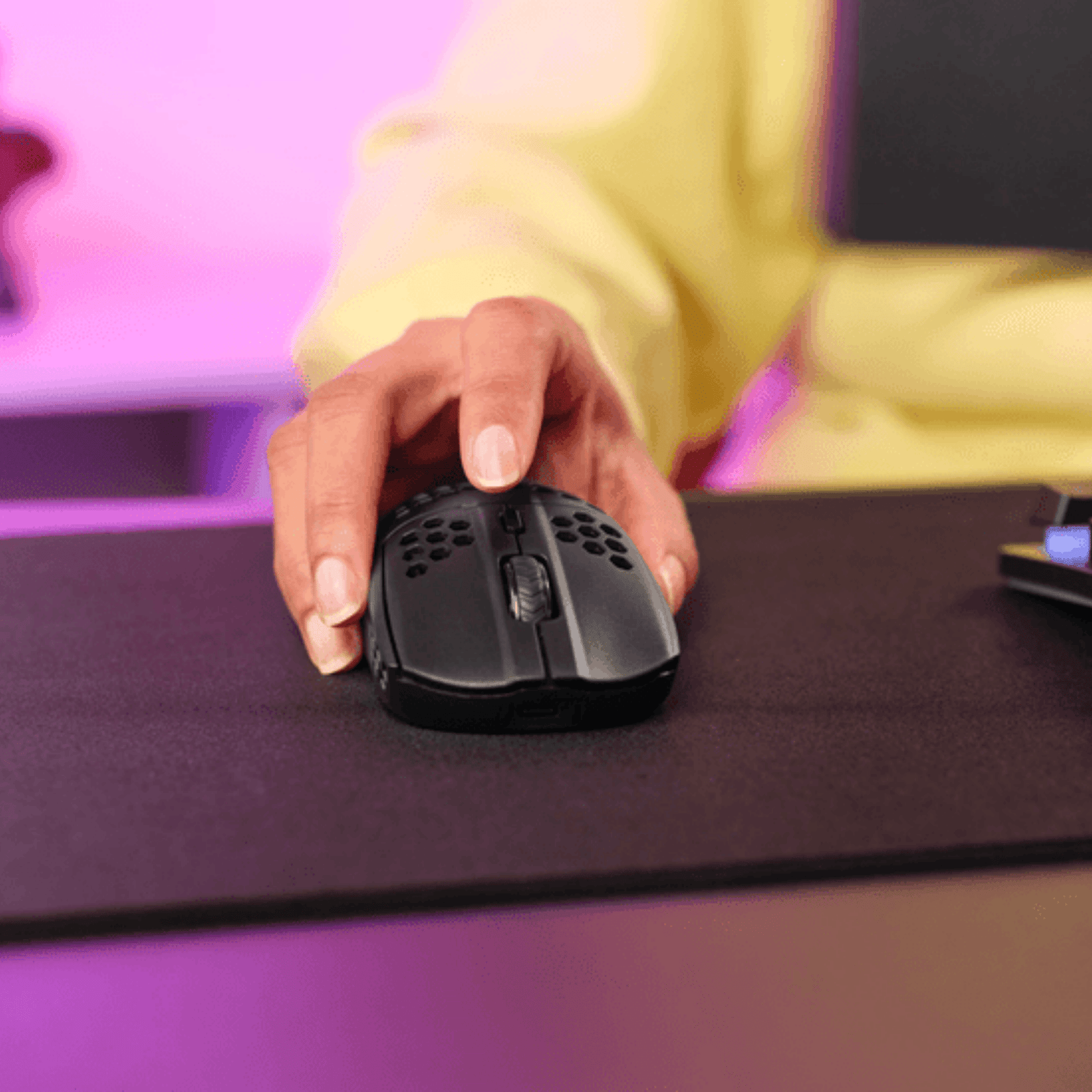 Con un peso de apenas 75 g, el Helox Wireless permite movimientos rápidos, precisos y sin esfuerzo. Su estructura perforada reduce significativamente la carga en la mano, ideal para sesiones prolongadas de juego.