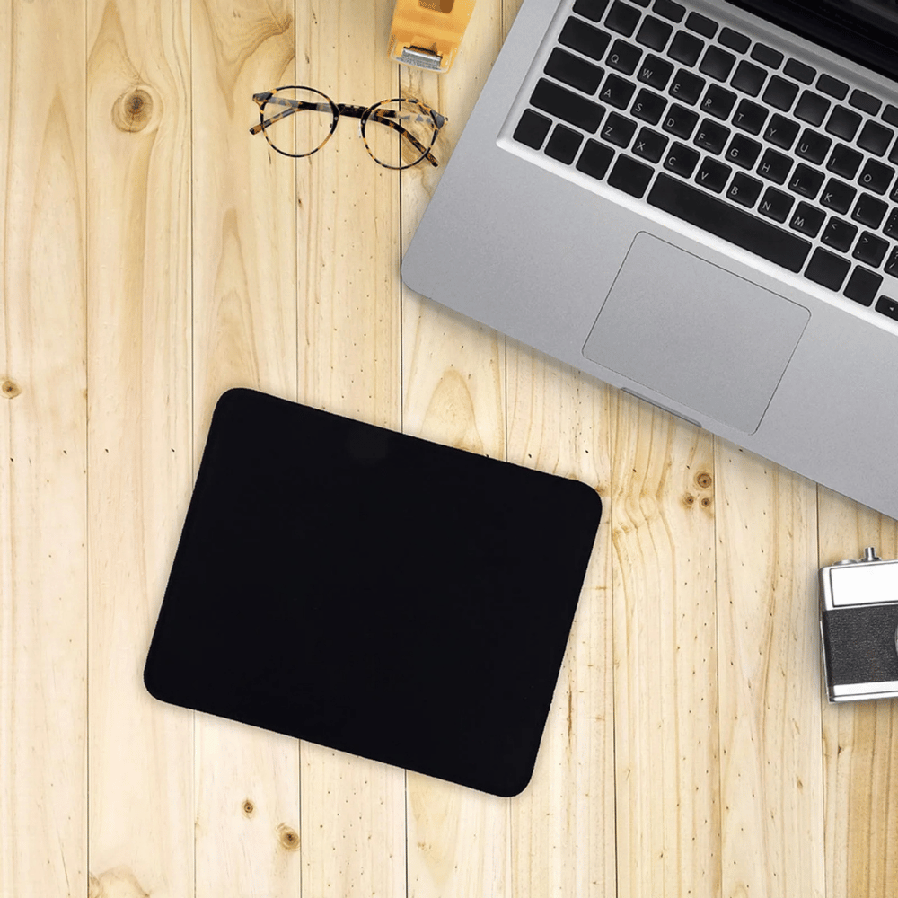 Mouse pad compacto de poliéster y caucho, ideal para precisión, estabilidad y comodidad en trabajo, estudio o gaming.