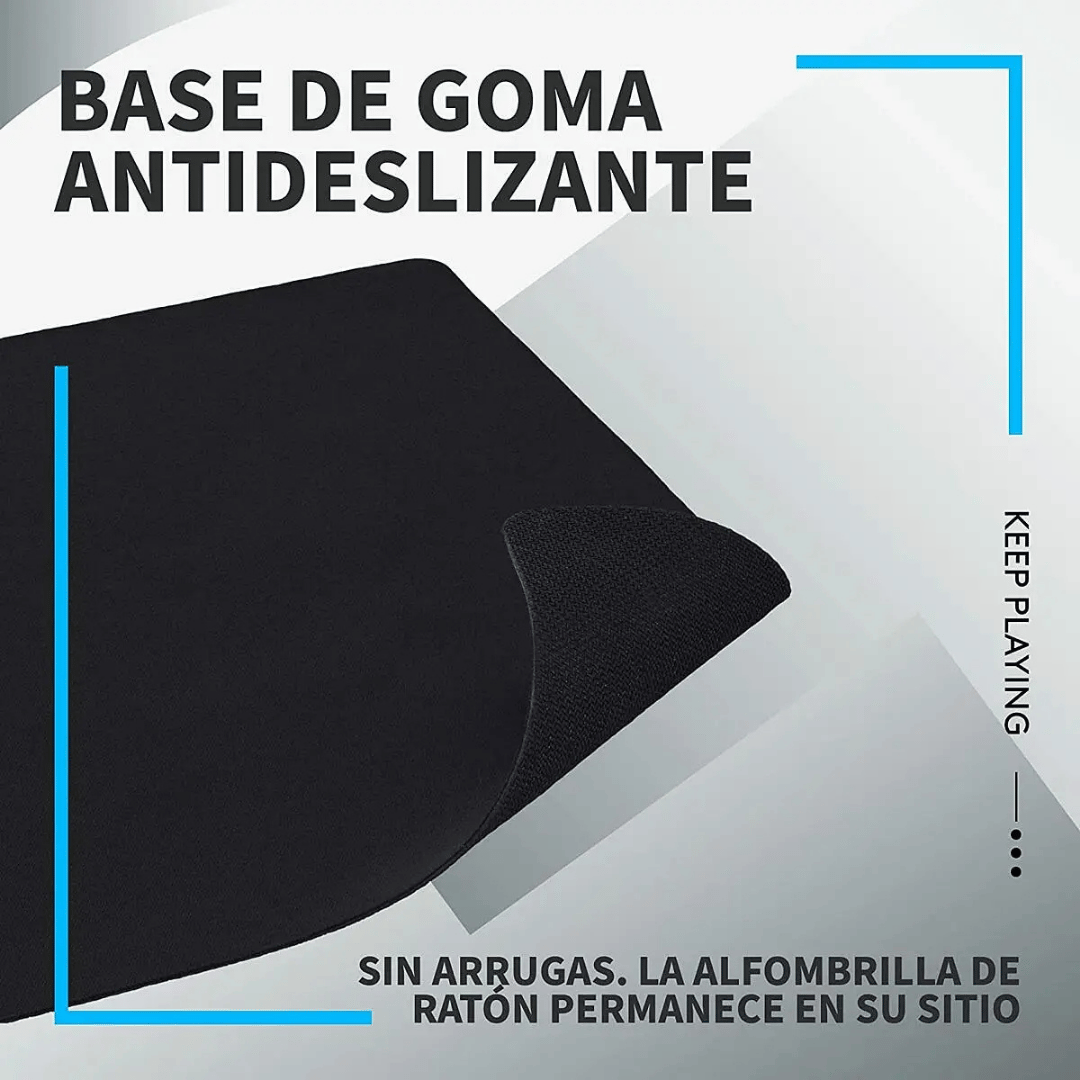 La base de goma mantiene el pad firmemente en su lugar durante sesiones intensas, evitando deslizamientos o arrugas que afecten la precisión del juego.