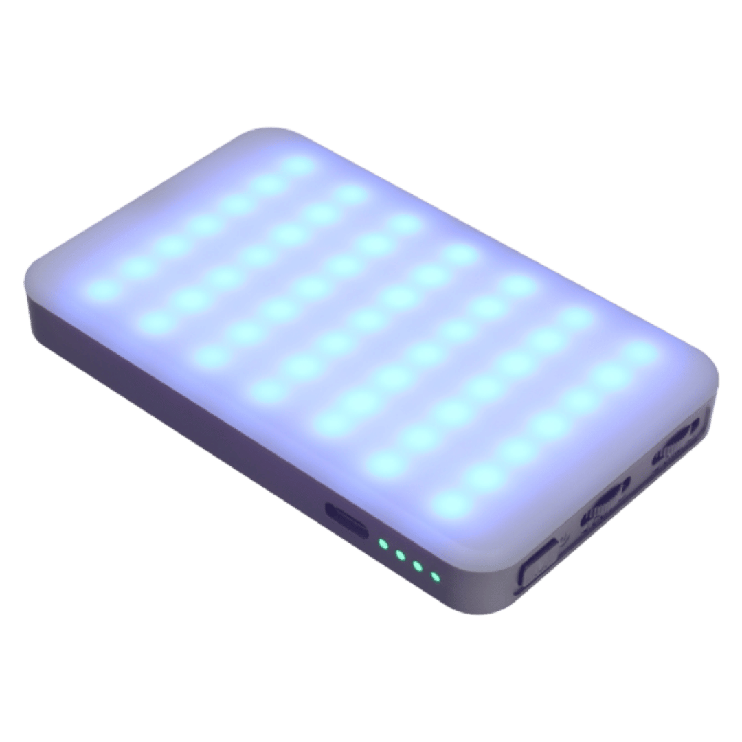 Equipado con batería de litio recargable y alimentación por USB Tipo C (5V/1000mA), brinda una iluminación constante y duradera para sesiones prolongadas.
