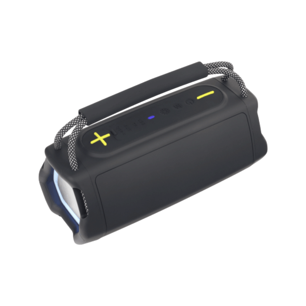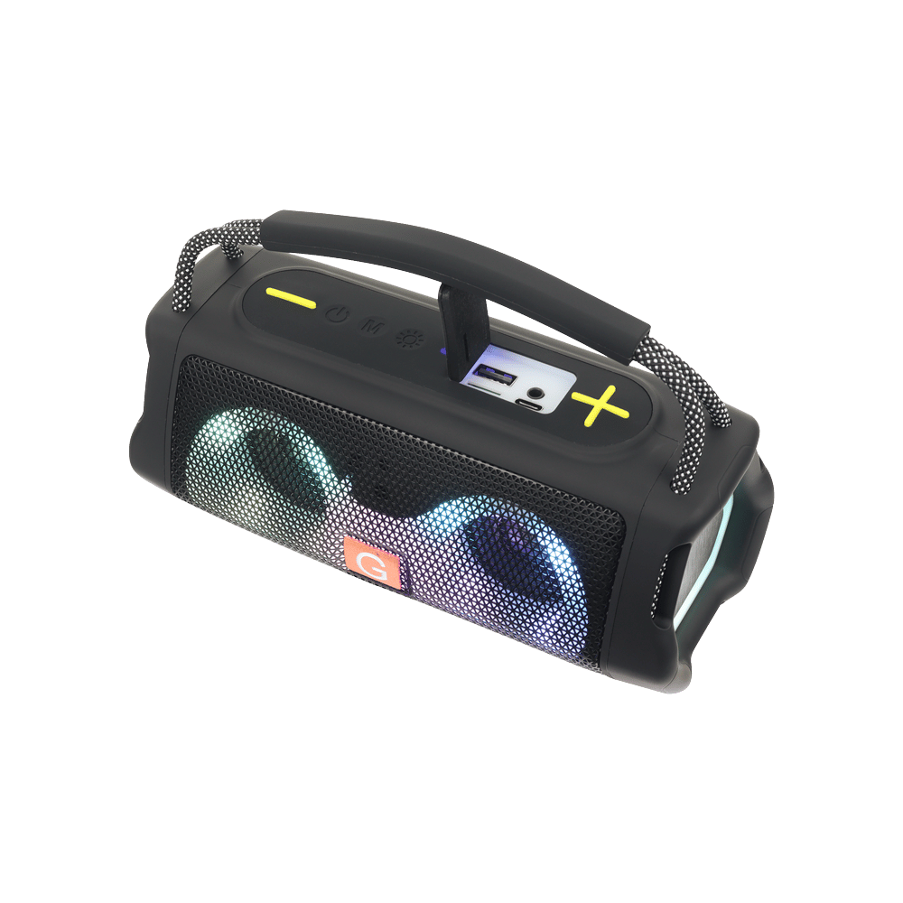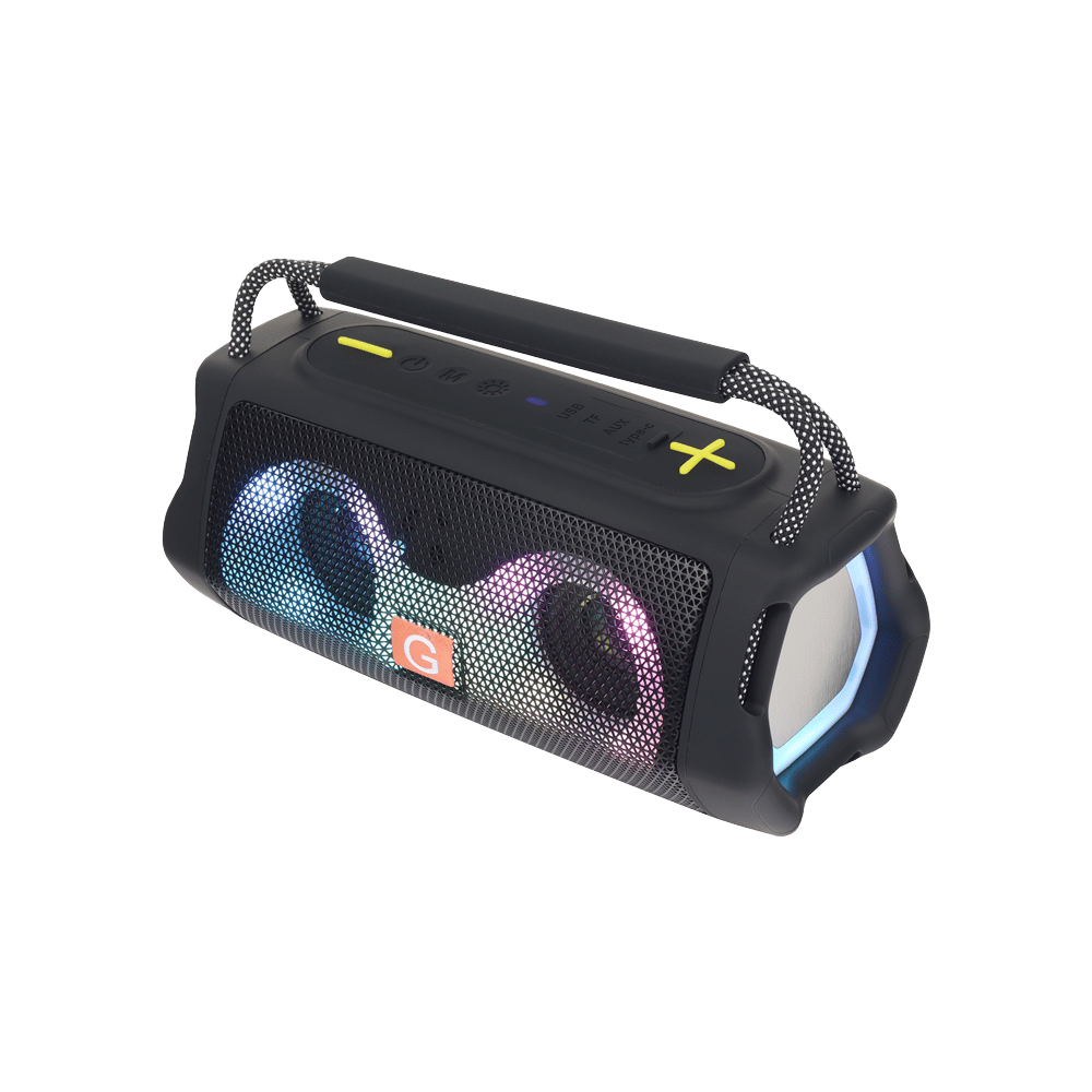 Fabricado en ABS con rejilla metálica, combina resistencia, estilo y portabilidad. Su tamaño compacto facilita transportarlo a reuniones, viajes o actividades al aire libre.