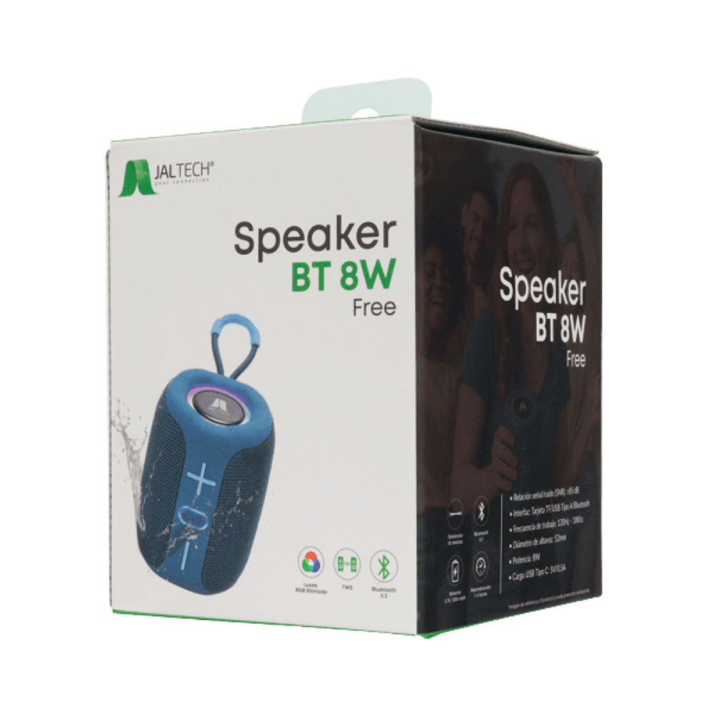 parlante con potencia de salida de 8w que ofrece audio claro y balanceado, ideal para escuchar música, podcasts o contenido multimedia en cualquier lugar.