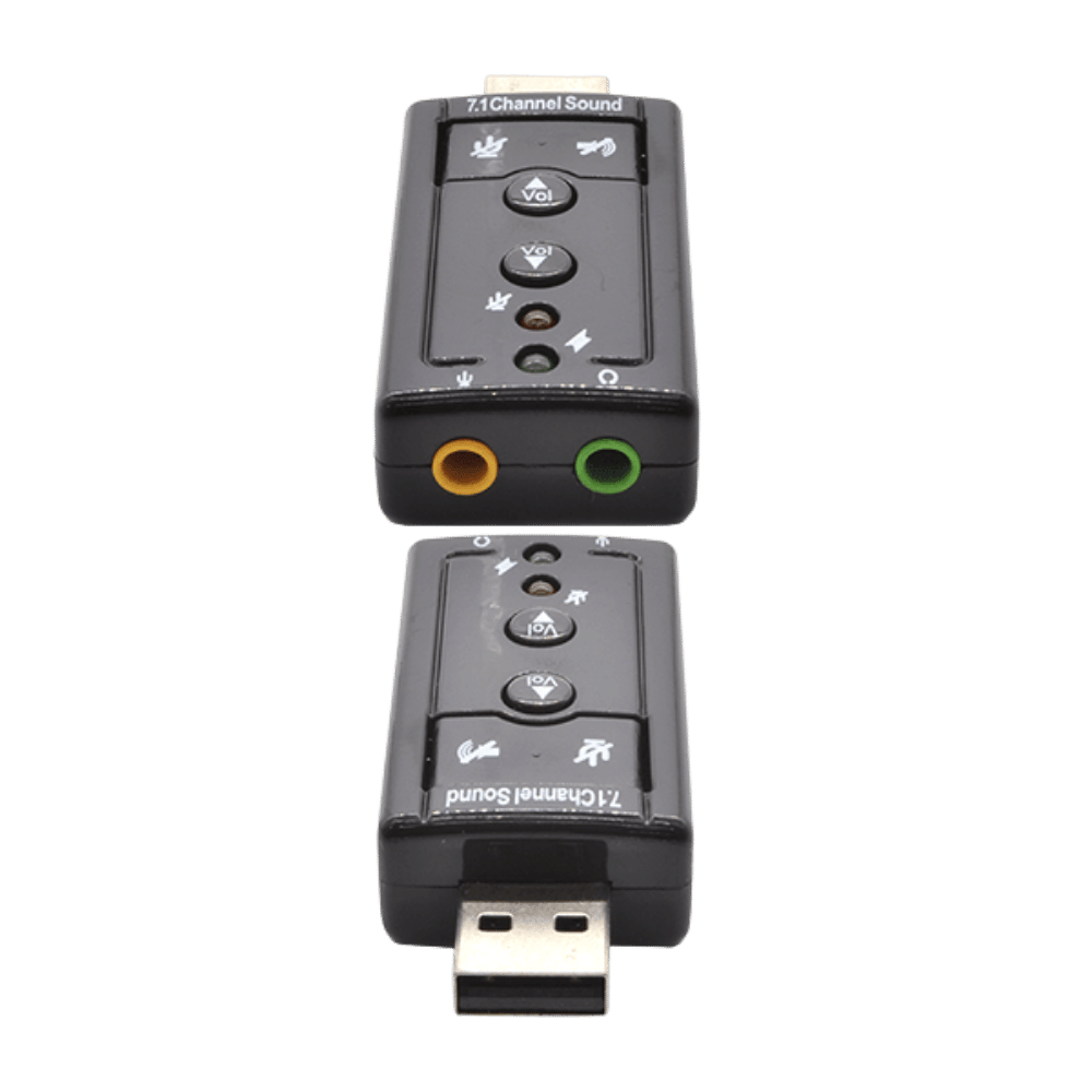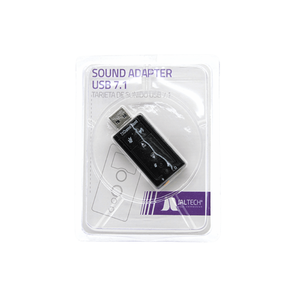 Mejora el audio de tu equipo con esta tarjeta de sonido USB 7.1, diseñada con salida 3.5 mm, entrada de micrófono y control integrado. Ideal para gaming, videollamadas y uso multimedia.